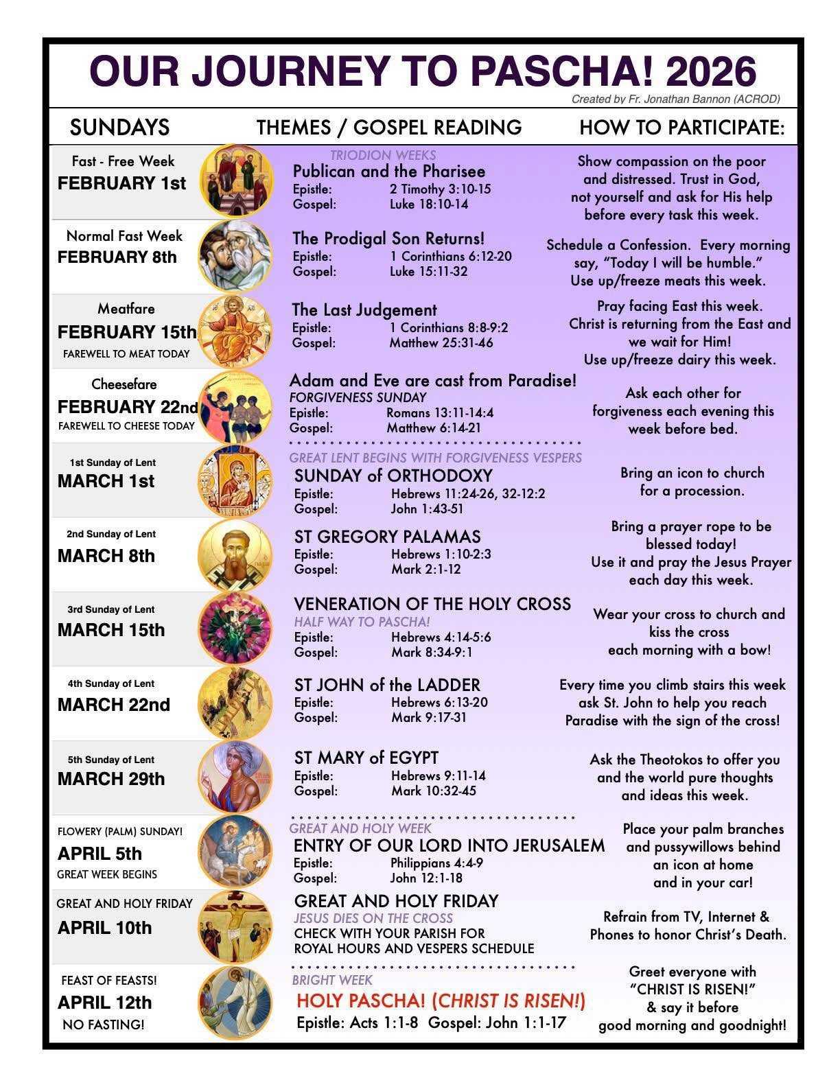 Our Journey to Pascha begins 1st of February 2026.